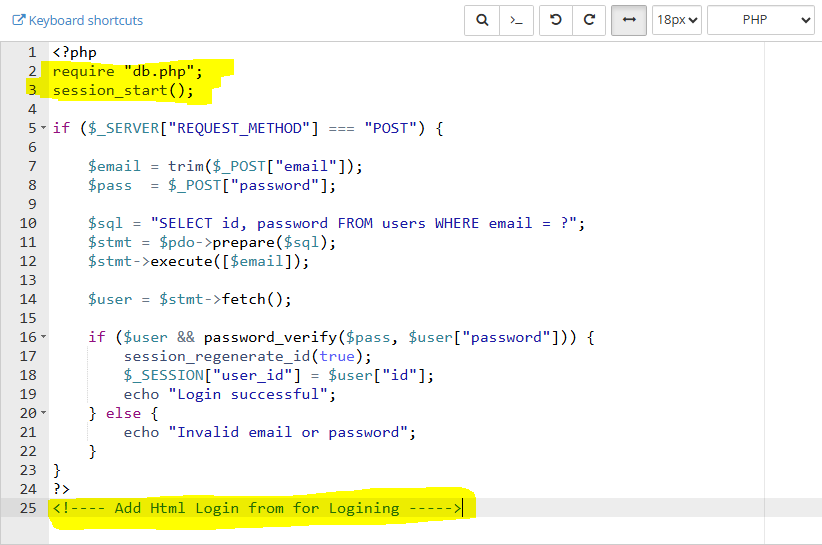 login.php (Backend Logic)