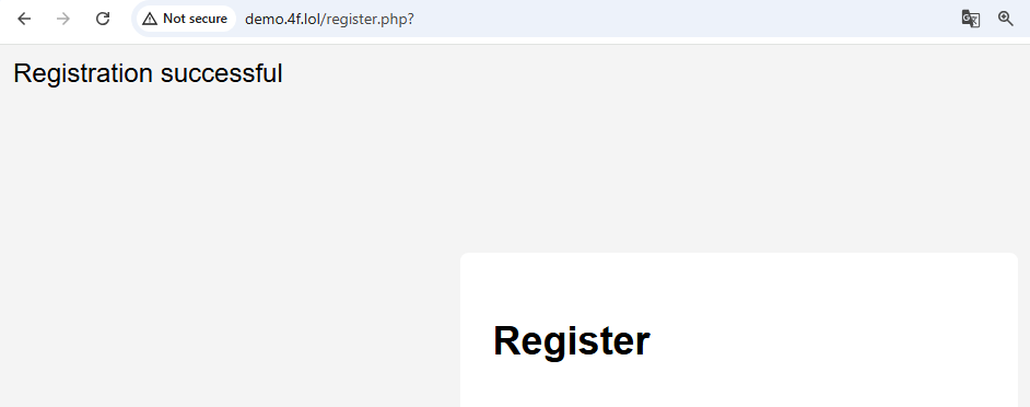 echo "Registration successful";